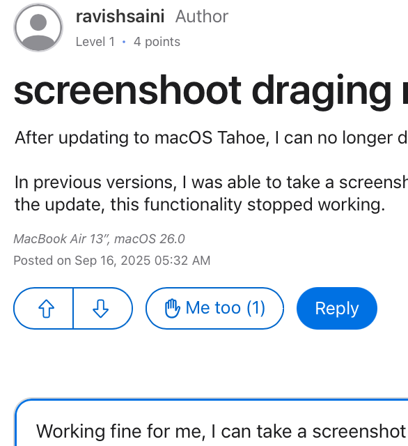 After updating to macOS Tahoe, I can no longer drag screenshots directly.