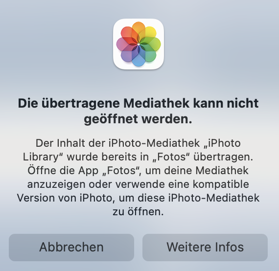 What is the extension for this iPhoto Library? Is it "iPhoto Library.photoslibrary?" It looks like it is not a Library that has been converted to work with Photos-- the icon indicates that it will only work with iPhoto, and the iPhoto app isn't supported any more. If that's the case, you may be able to open a Photos Library and use File>Import to bring in the pictures from the iPhoto Library, but you would lose the Events organization.