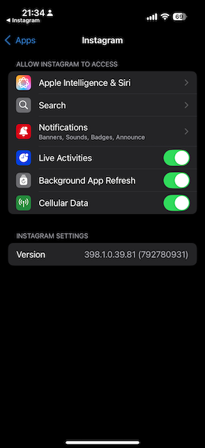 When I got my new phone (iPhone 16 pro) after a little while of having it, most of my apps especially Instagram is not giving me the option to give access of my photos. This screenshot is of me going to settings>apps>instagram then I tried doing settings>privacy&security>