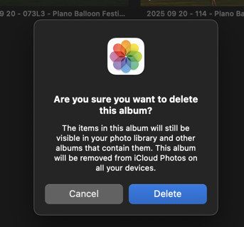 How to delete an album in Photos on MacBook?