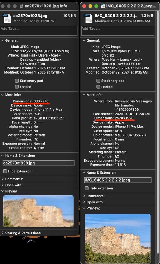which looks just right. It's almost like yours is seeing a decimal point, or something that we don't.It certainly looks the same! Did you try messing with it--try 60x30 or 61x28, just to see if you can tell what's going on? This was a normal 4x3 picture to begin with, right?