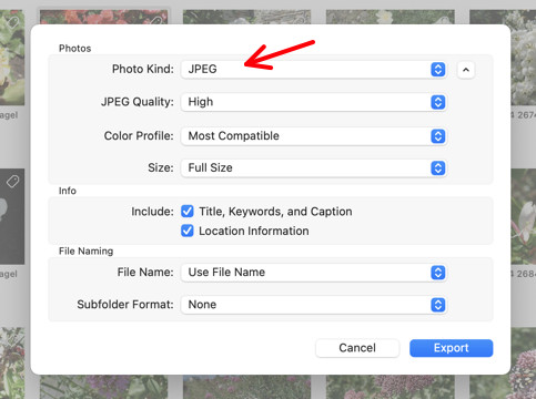Matti Haveri suggested sending her originals, but if they're heic, for instance, she might prefer jpgs. This dialog gives you the most control.