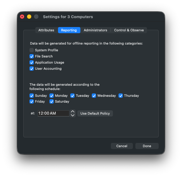 Changing the Settings as you suggested (first screenshot below) did not prevent printers from vanishing in my test. Maybe I need to uncheck all options and days of the week instead (second screenshot)?