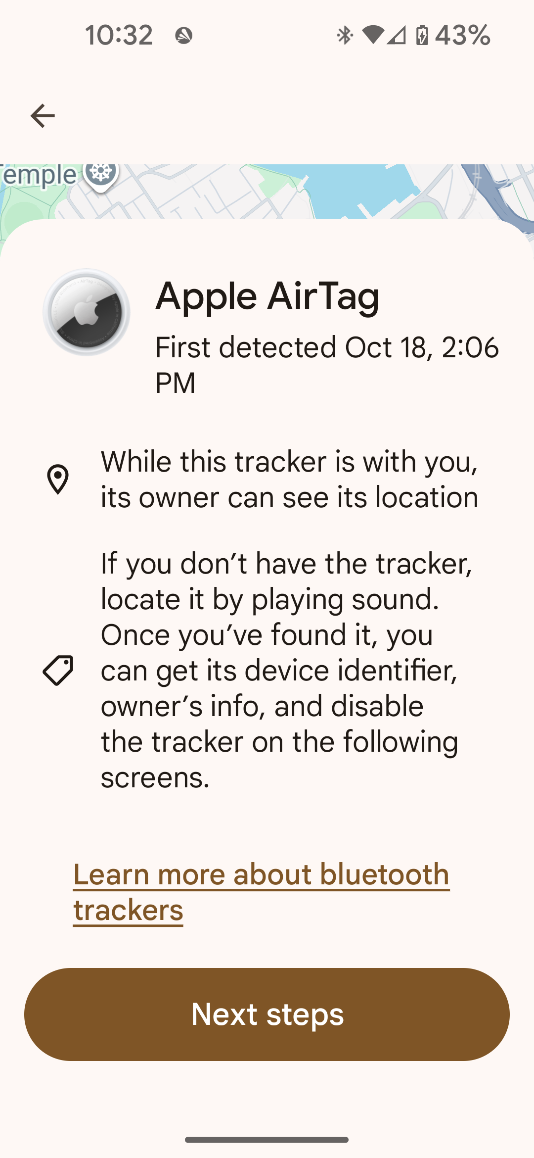 hi i get a notification when i get home on my android phone after cycling but previously it would allow me to see on a map where i went with my bike and the airtag i have hidden on said bike. not its hard to see the map behind the notification. its there but i cant expand it . the message is larger than it used to be. i guess thats an android issue and apple wouldnt care but if theres a feature i like using i would like to use it