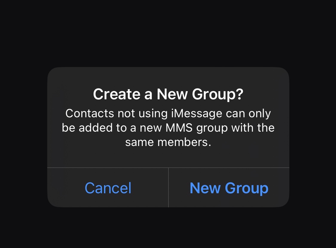 My sons tried to add me back and kept getting this message. We all have iPhones and have iMessages turned on. We can chat individually via iMessage.