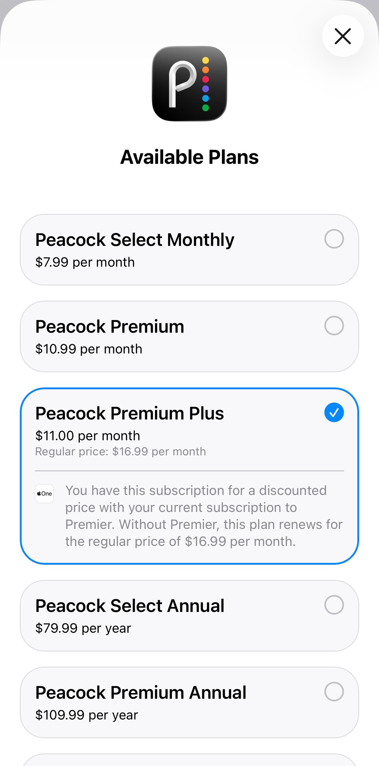 I’m an Apple One Premier subscriber and I have tried to take advantage of the new deal with NBC Universal to add a discounted Peacock subscription. OMG… Apple should be ashamed of themselves for how painful this process has been. I went through the process on my Apple TV device, no option for me as a premier subscriber. I went through Subscriptions on my iPhone, no option for Peacock, I went through the Apple TV app and found the option, which I added, and was charged $19.99 for the new bundle. No credit for the existing Apple One subscription. I opened up subscriptions on my iPhone and was notified that I had conflicting (overlapping) subscriptions for Apple TV. I canceled the new Peacock bundle but am stuck paying the $20 for the month. In short, this has been the worst Apple experience I’ve ever had in many years of being an Apple customer. This is a very poorly executed collaboration between Apple and NBC for existing Apple TV subscribers. I’m now stuck with no idea how to get the new bundle and would not recommend this service to anyone.