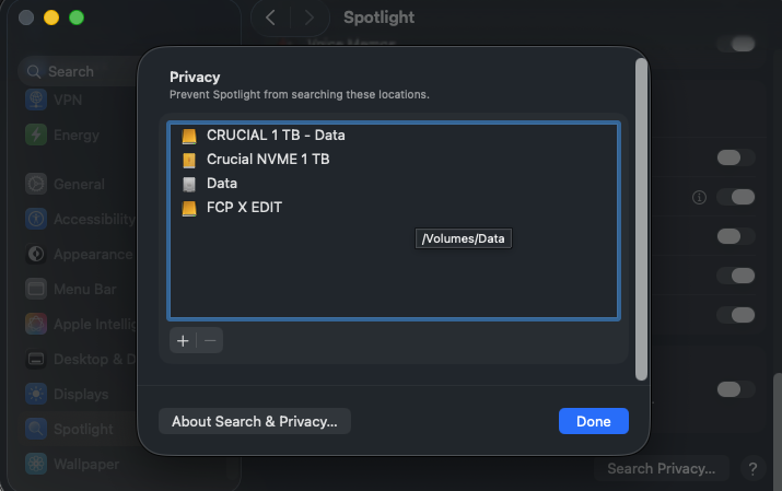 Open System settings/Spotlight and scroll to the bottom where you will find a button called "Search Privacy".
