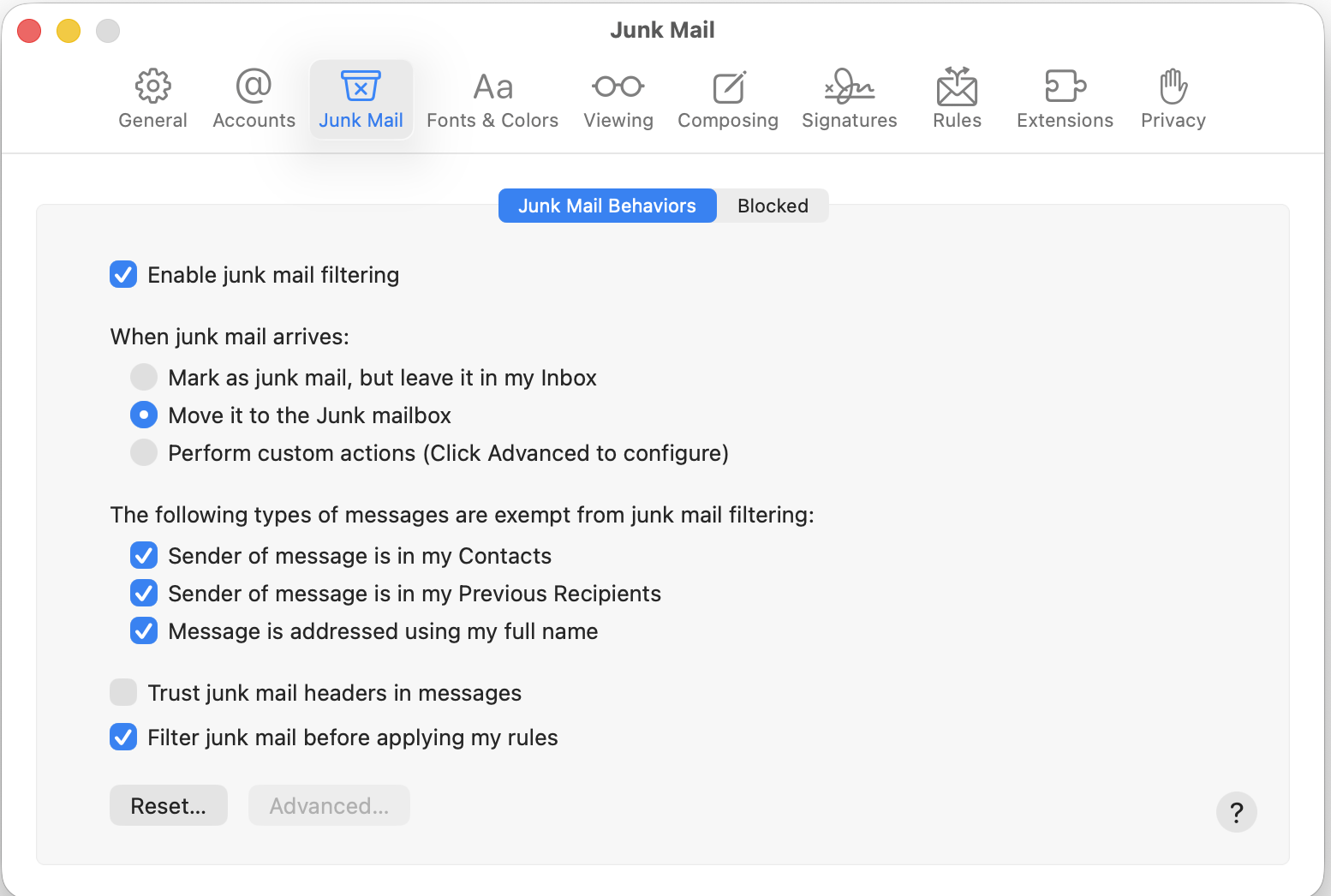 A few days ago I deleted a few thousand emails. Today I notice that the option to "Block" the sender of an email is no longer there. When right clicking on an email in the inbox list, or anywhere else, a contextual menu shows items like Mark as Read, mOve to Inbox, Delete, etc. It also used to show "Block". Now it does not. Any thoughts?