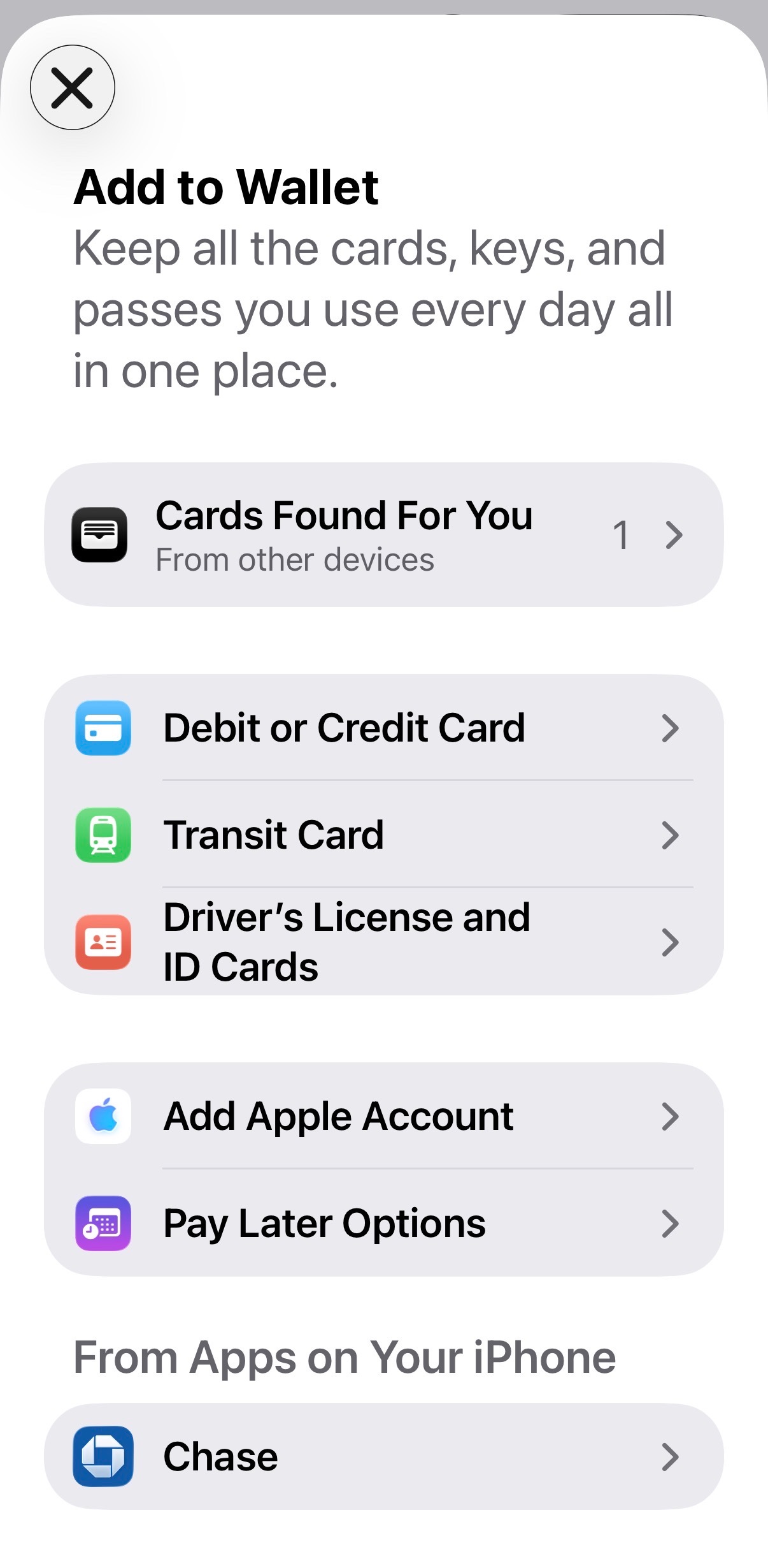 I tried to add my health insurance card to my wallet. I no longer see the option to add a pass. The add option only has: credit card, driver license, etc..