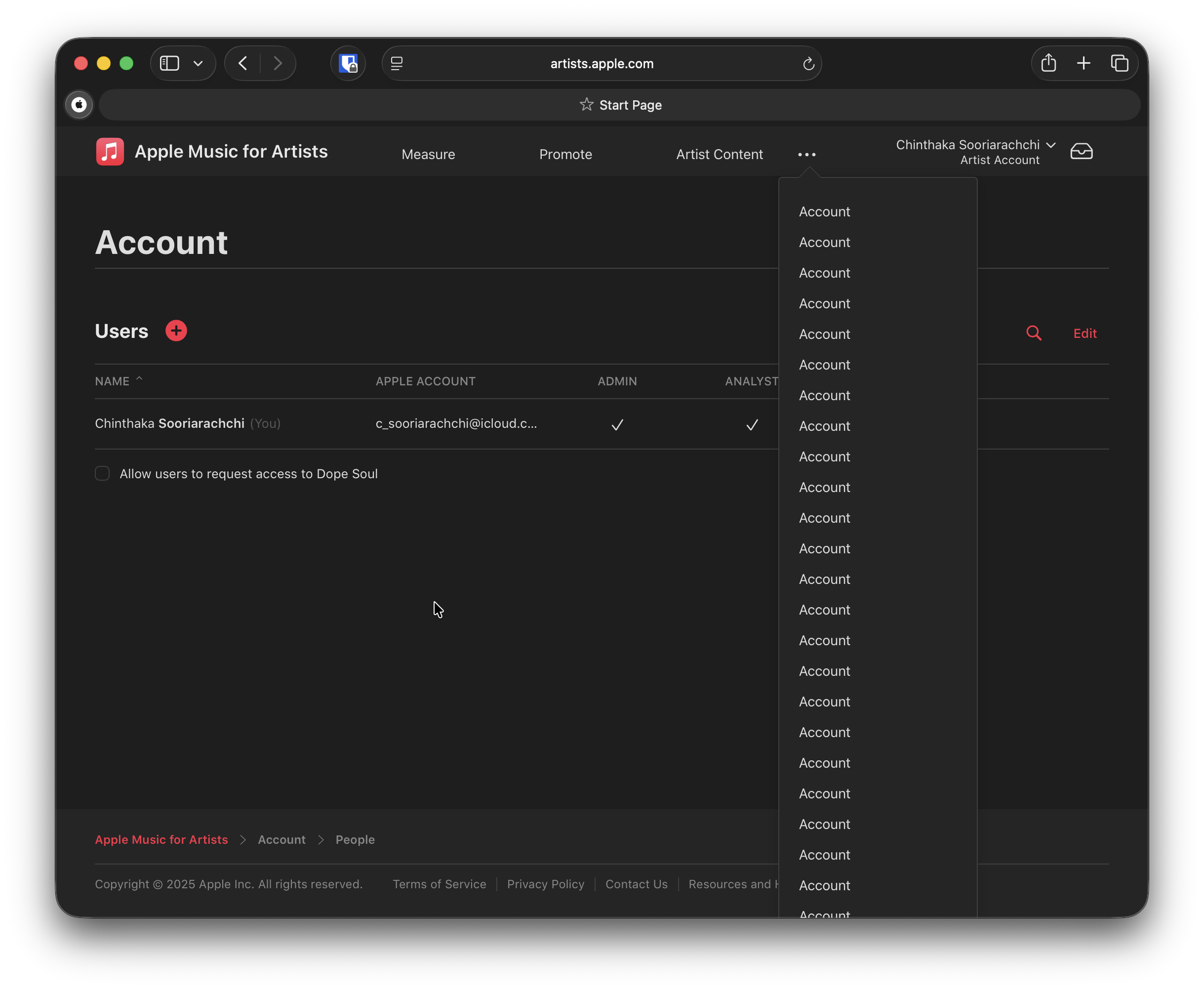 When clicked the more options menu (meatballs menu) apple music artist page, it shows 'Account' option more than 20-30 something as shows in the SS. Bug I think, or Apple trying to make my LSD trip confused one?