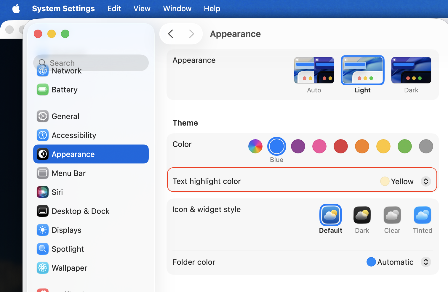 The same snippet in Sequoia (with the same Automatic setting for text highlight color):