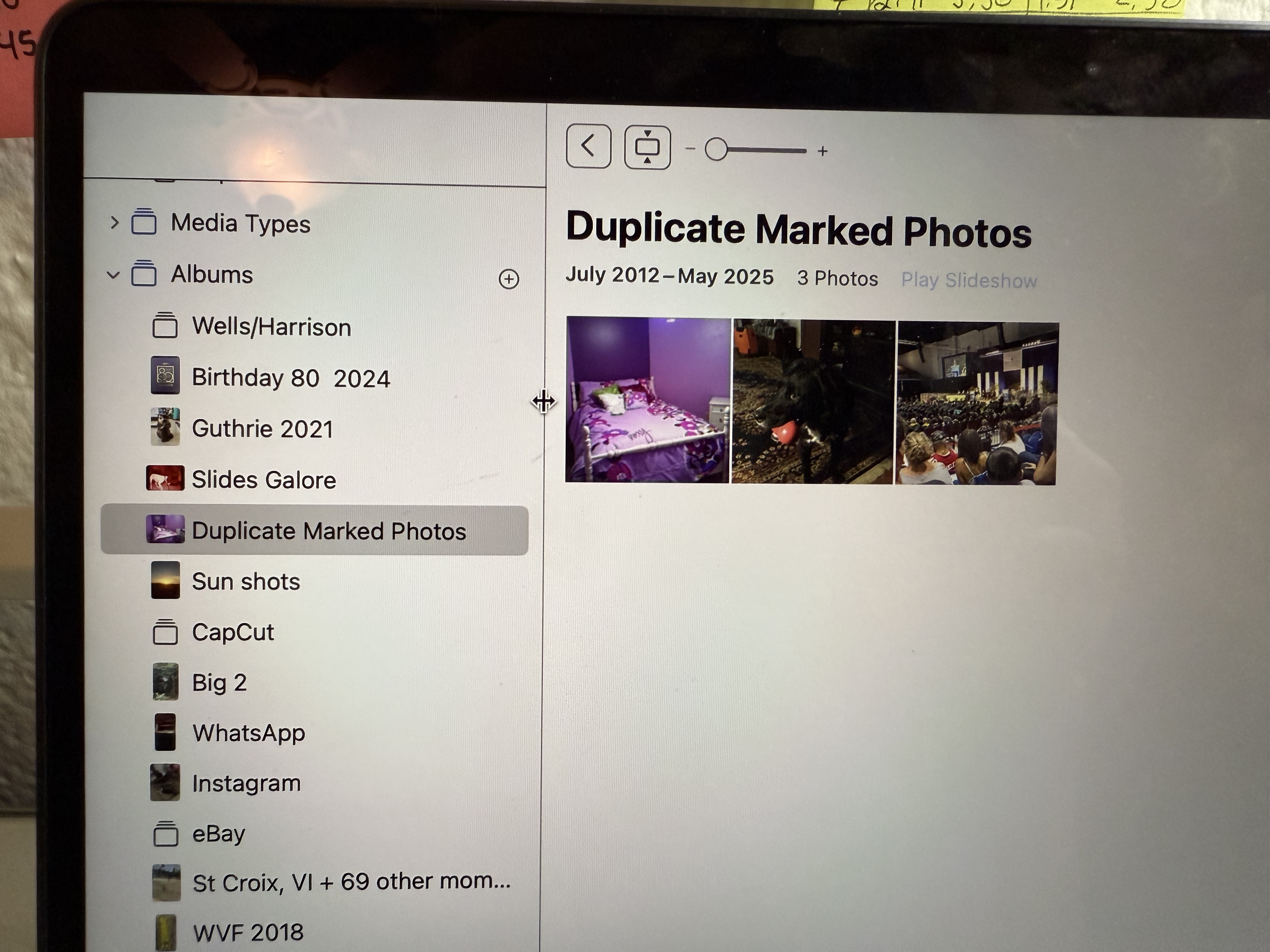 Can you tell us more about what you mean? Where do you see these phrases? I don't have them, and I haven't seen them mentioned, before. You are using the Photos app on a Mac, is that right? Photos does not "mark" any pictures as duplicates. What OS are you running? We sometimes make duplicates so that we can try a different crop or edit, and we may include "Dupe" or something in the caption or title. But this is entirely for personal use. Perhaps you're seeing pictures that someone else as labeled.