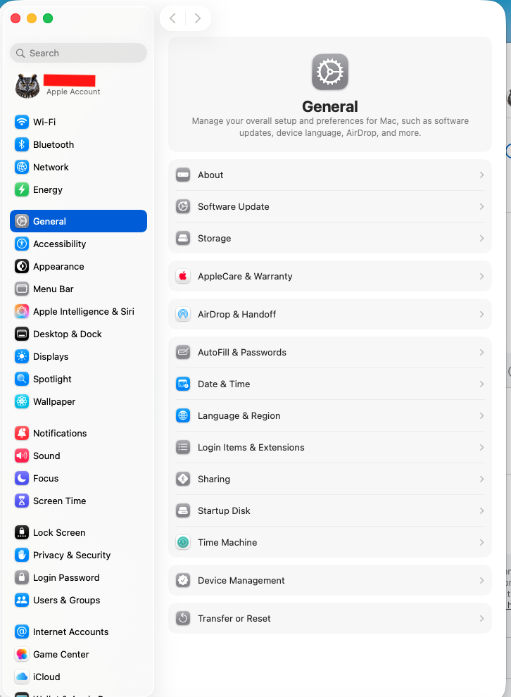 is settings full screen? my setting is not going full screen mac os tahoe 26.1
