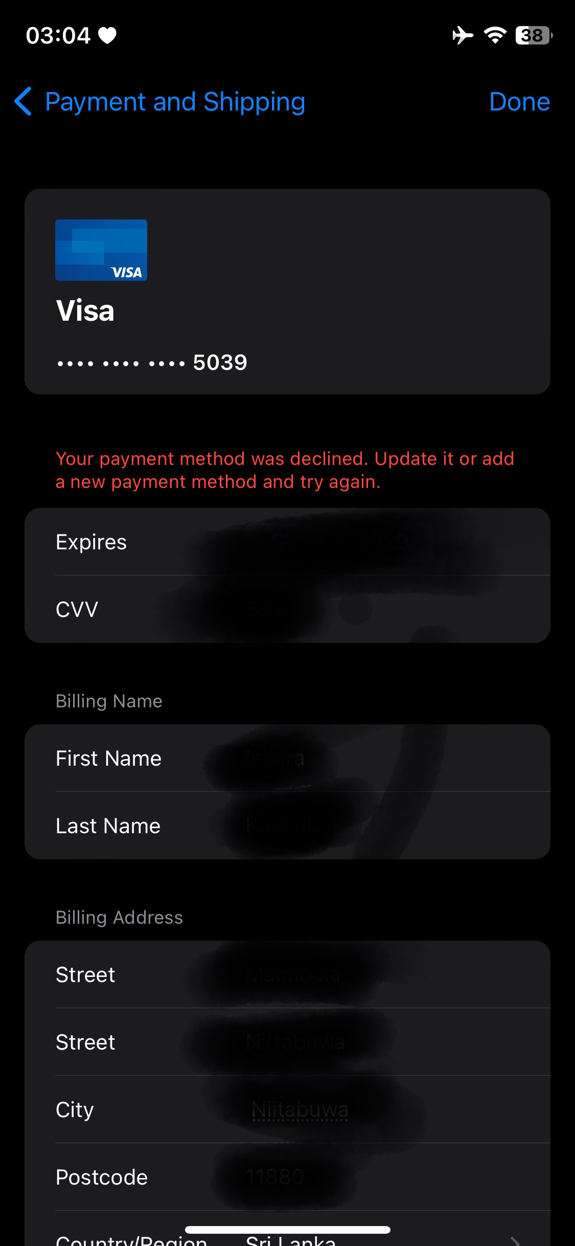 i dont know why the apple communty said my payment details details are incorrect. i added my visa bank card i used it for everything but i gave a massage everyday for that billng error.. please send my cash back for my BANK OF CEYLON VISA payment card.