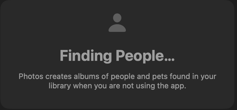 My Mac's Photos app is stuck on “Finding People”. Even though I have a couple of thousand photos already tagged with people. The photos app did display people at some point, but I believe the issue started when I turned on iCloud photos option in the settings. How can I fix this?