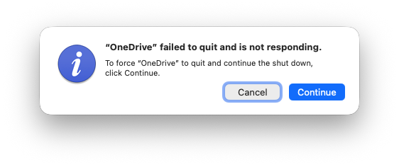 OneDrive hangs on macOS shutdown or restart
