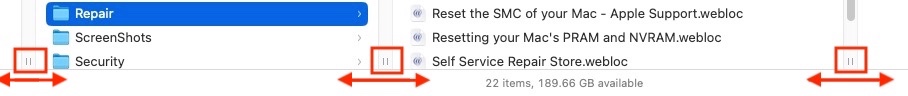 Fix column widths in folders on MacBook