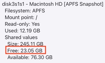 macOS reports 77 GB “Available” (this includes purgeable space)
