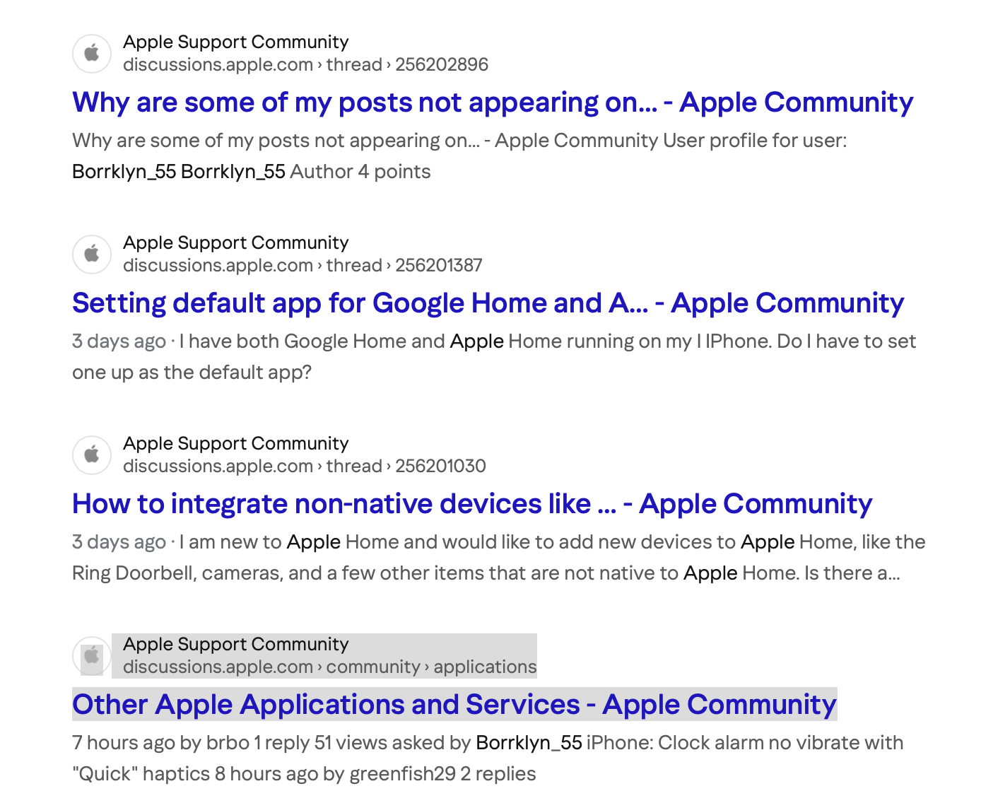 That search leads me to believe that some posts were expunged. You get a notice to the email address associated with your Apple Account/Apple ID if you are the author of such a post and it was removed for cause. If you have more than one address, check the others.