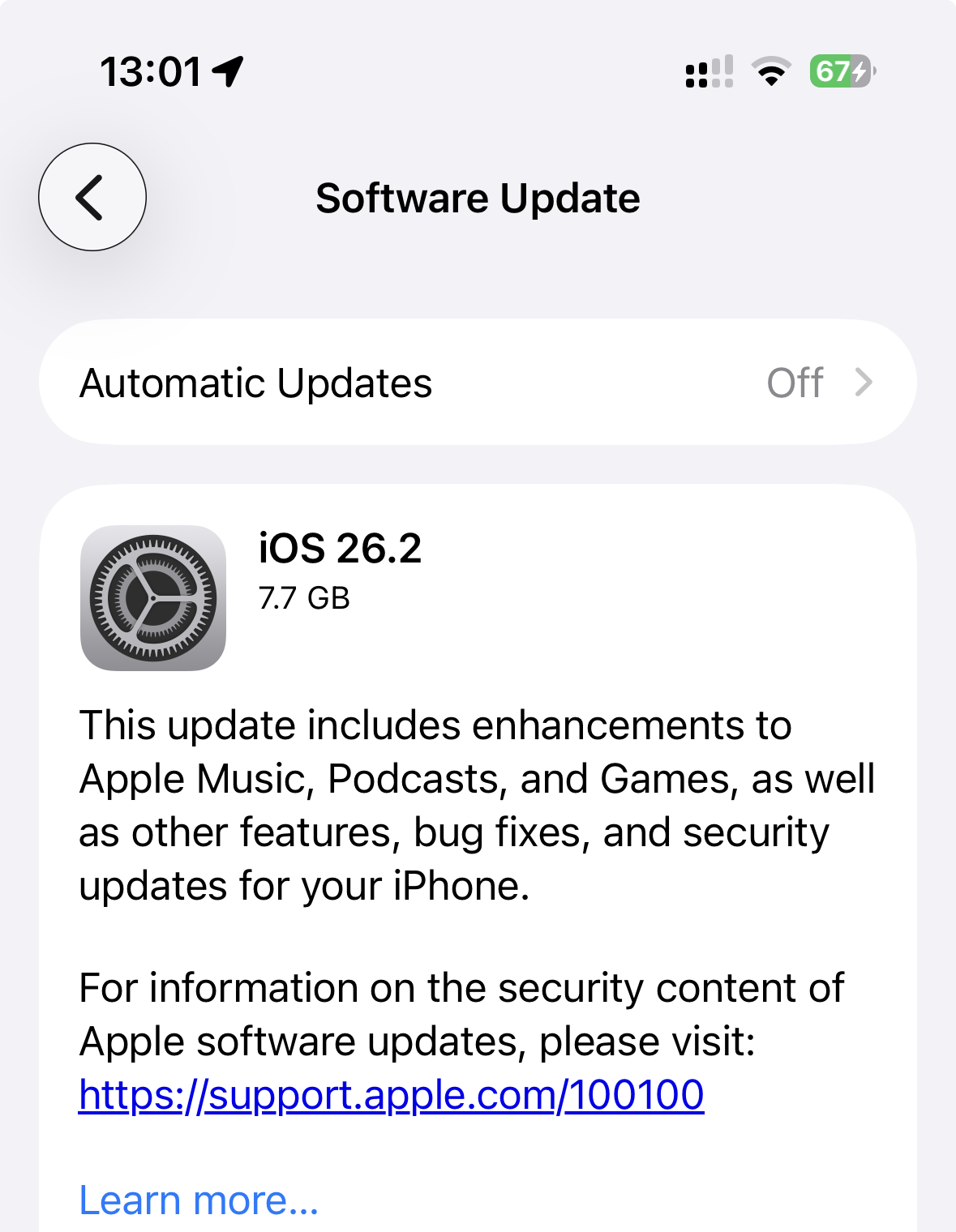 hmm , on my iPhone 15 pro - 26.1 to 26.2 is almost 8GB. where are you getting your update from ?
