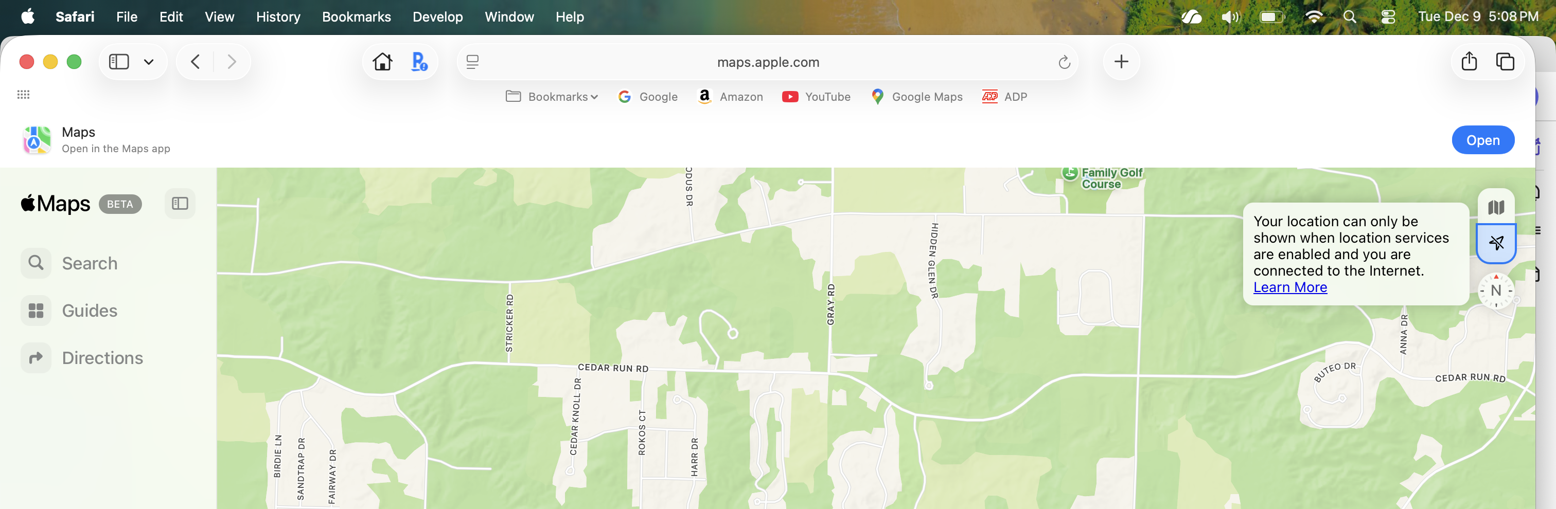 I'm having an issue with location services in Safari on macOS (currently running Tahoe, problem started with prior versions of MacOS) on an M1 MBP. When in Google Maps or Apple Maps beta on Safari, both give me an errors when it comes to location. Google Maps says "Google Maps does not have permission to use your location". Maps.apple.com says "Your location can only be shown when locations services are enabled and you are connected to the internet". My location services are enabled, in Safari I've verified that location is set to Allow for both google.com and maps.apple.com. I've attached screenshot of both errors and my location settings in Safari. I have no location issues with Safari on my iMac, my older Intel MBP or on iOS. This is driving me mad, almost to the point of doing a nuke and pave on this thing. Any thoughts?