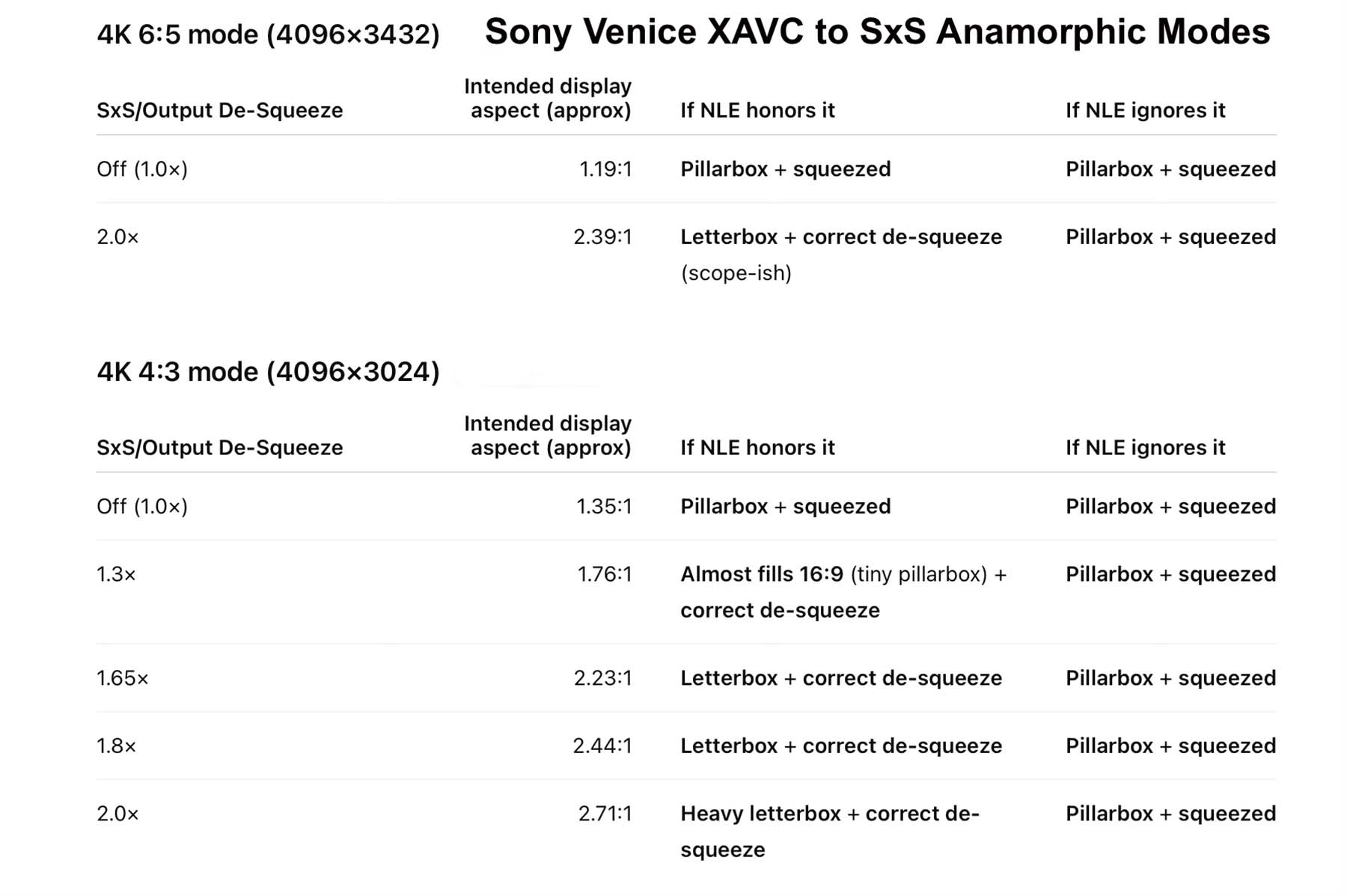 That said, the Venice manual also states: “The Anamorphic license is required to enable ratio settings, other than Off (1.0×), for the de‑squeeze function.” So if the camera body did not have the anamorphic license enabled at the time, the crew could still shoot 6K 3:2 X‑OCN, but they couldn’t set 1.5× de‑squeeze in-camera (beyond Off).