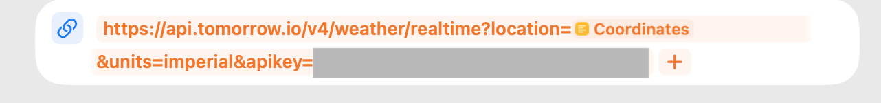 https://api.tomorrow.io/v4/weather/realtime?location=[Coordinates]&units=imperial&apikey=MyAPIKey