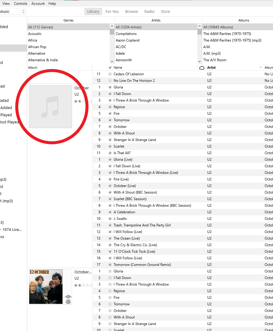 Error displaying Album Art in iTunes browser view