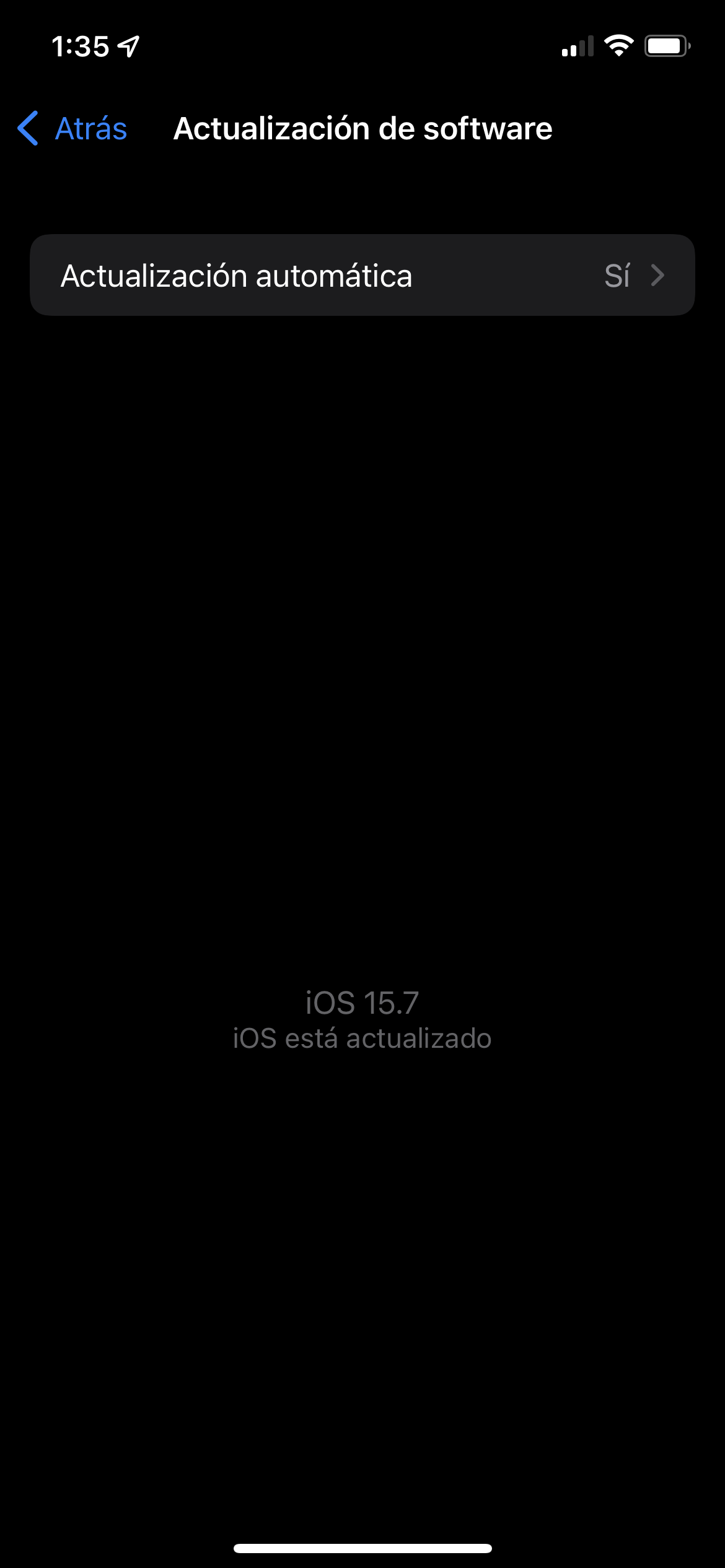 haz dos cosas: sal de Ajustes, vuelve a entrar y ve a ver las actualizaciones y a ver si ya aparece iOS 15.7 instalado; si después de lo hecho sigue sin aparecer, entonces apaga el iPhone, esperas unos momentos, enciendes de nuevo y vuelves a intentarlo, ya nos cuentas.