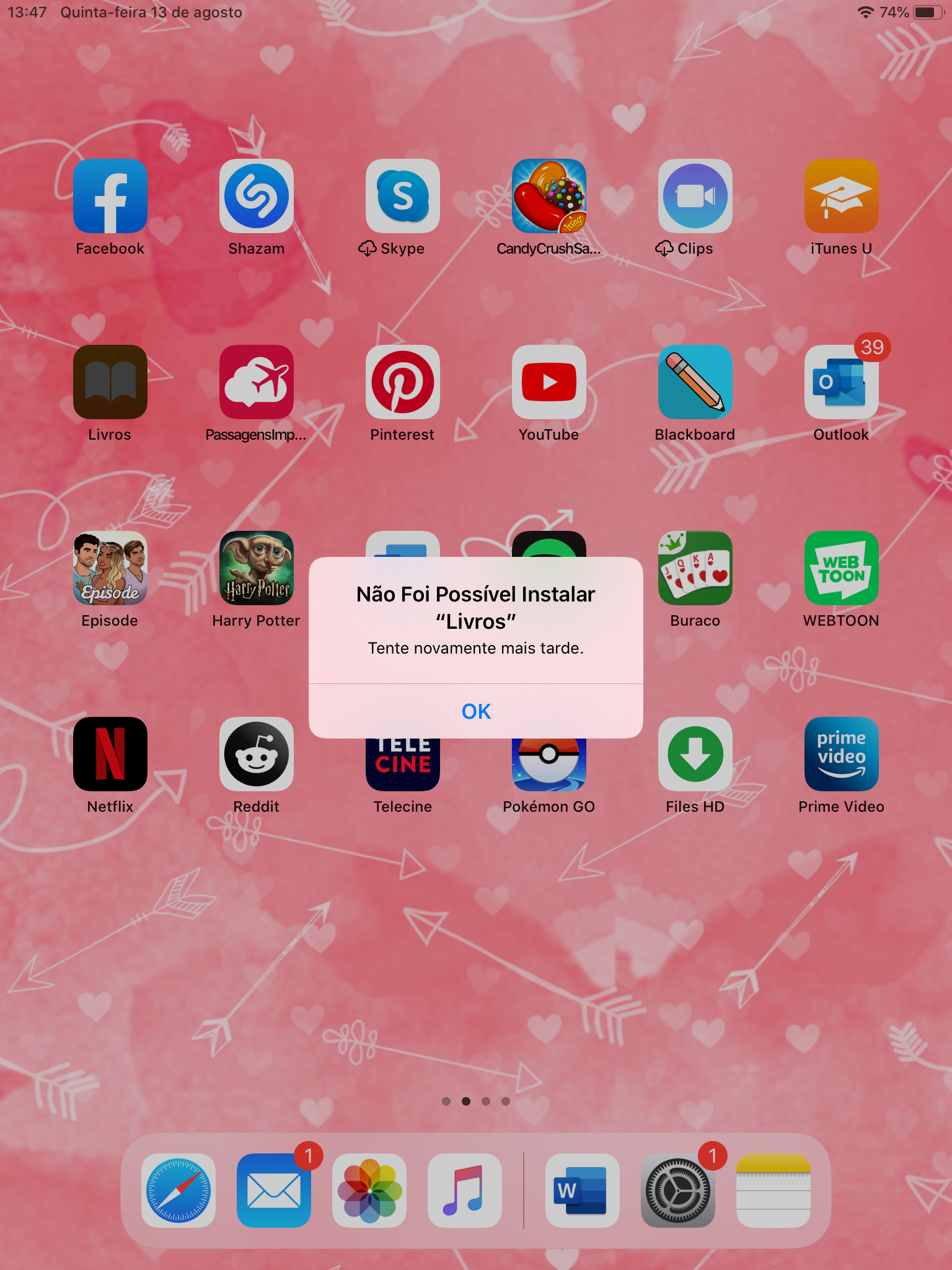 O aplicativo Apple Books/Livros é um dos que mais utilizo no meu iPad, mas de ontem para hoje, ele foi apagado do dispositivo, como acontece com aqueles que não são muito usados. Achei estranho, mas cliquei no ícone para baixá-lo novamente, só que agora fica dando erro repetidamente. O app nem começa a baixar, aparece “Aguardando” e pouco depois a mensagem “Não foi possível baixar Livros. Tente mais tarde”.