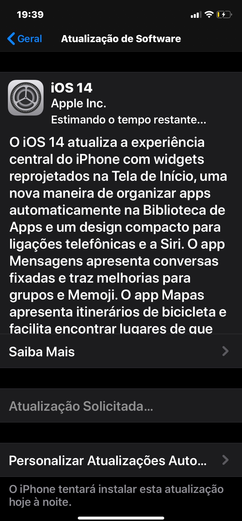 Não está baixando a atualização iOS 14.0 no meu iPhone XR 64gb