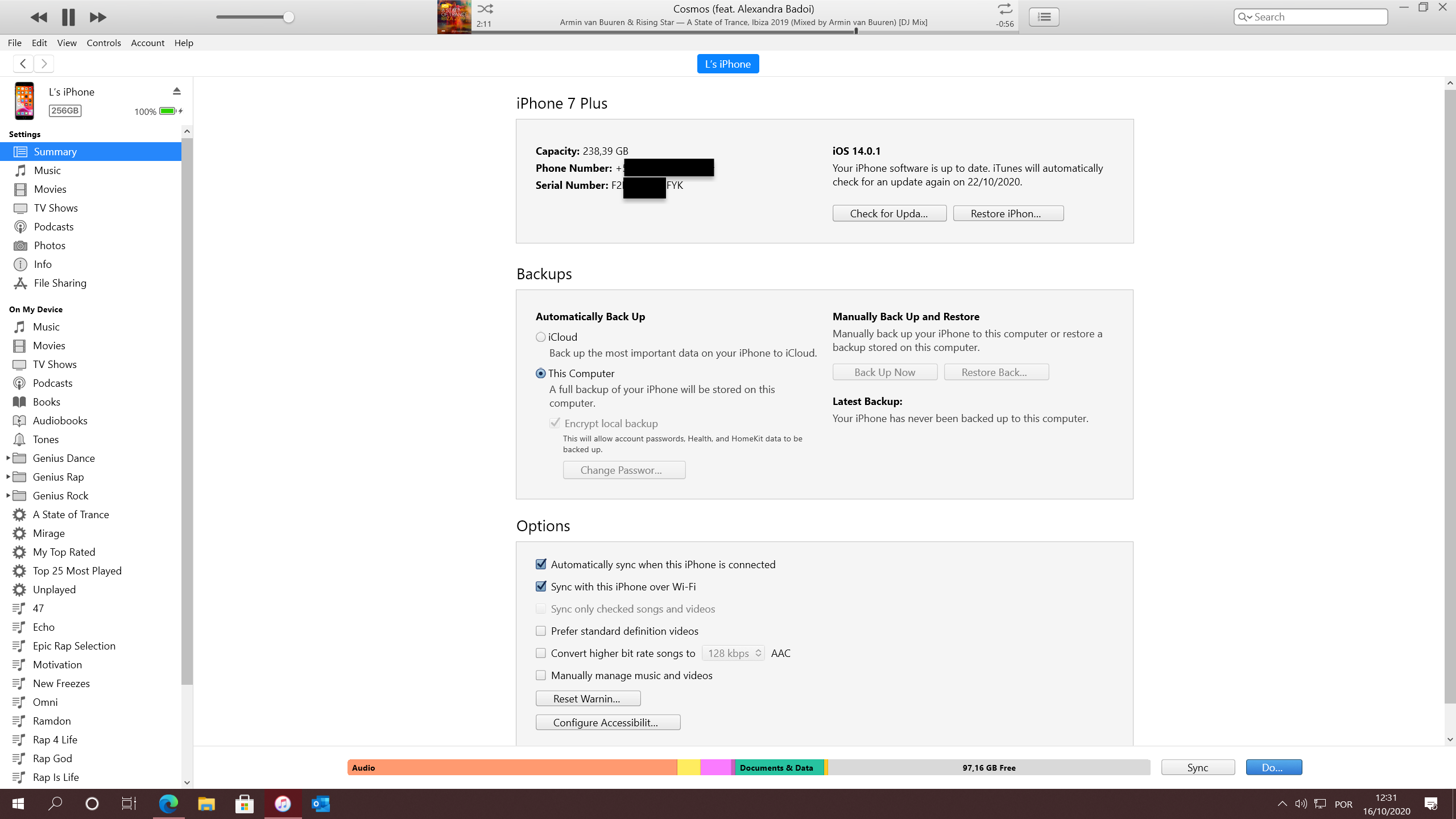 Backup do iPhone no iTunes - Não consigo a opção de backup manual
