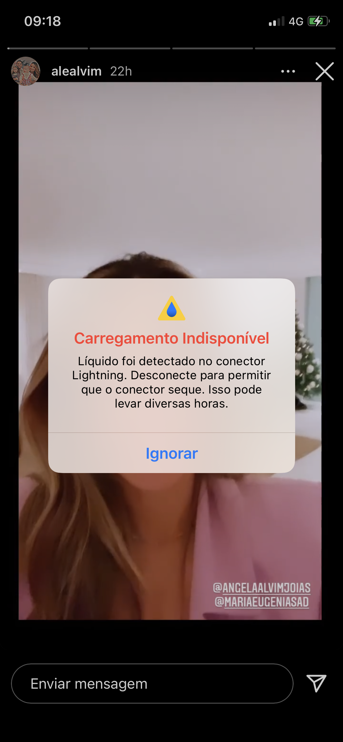 Meu celular está aparecendo a mensagem de que o carregamento está indisponível pois líquido foi detectado no conector lightning e pede pra desconectar pra secar mas já fiz isso e não muda a mensagem. Se o iPhone pode molhar até quase 30 minutos e eu apenas deixei o iPhone tombar de lado encostando em um pouquinho de água por menos de 10 segundos o que pode ser isso?