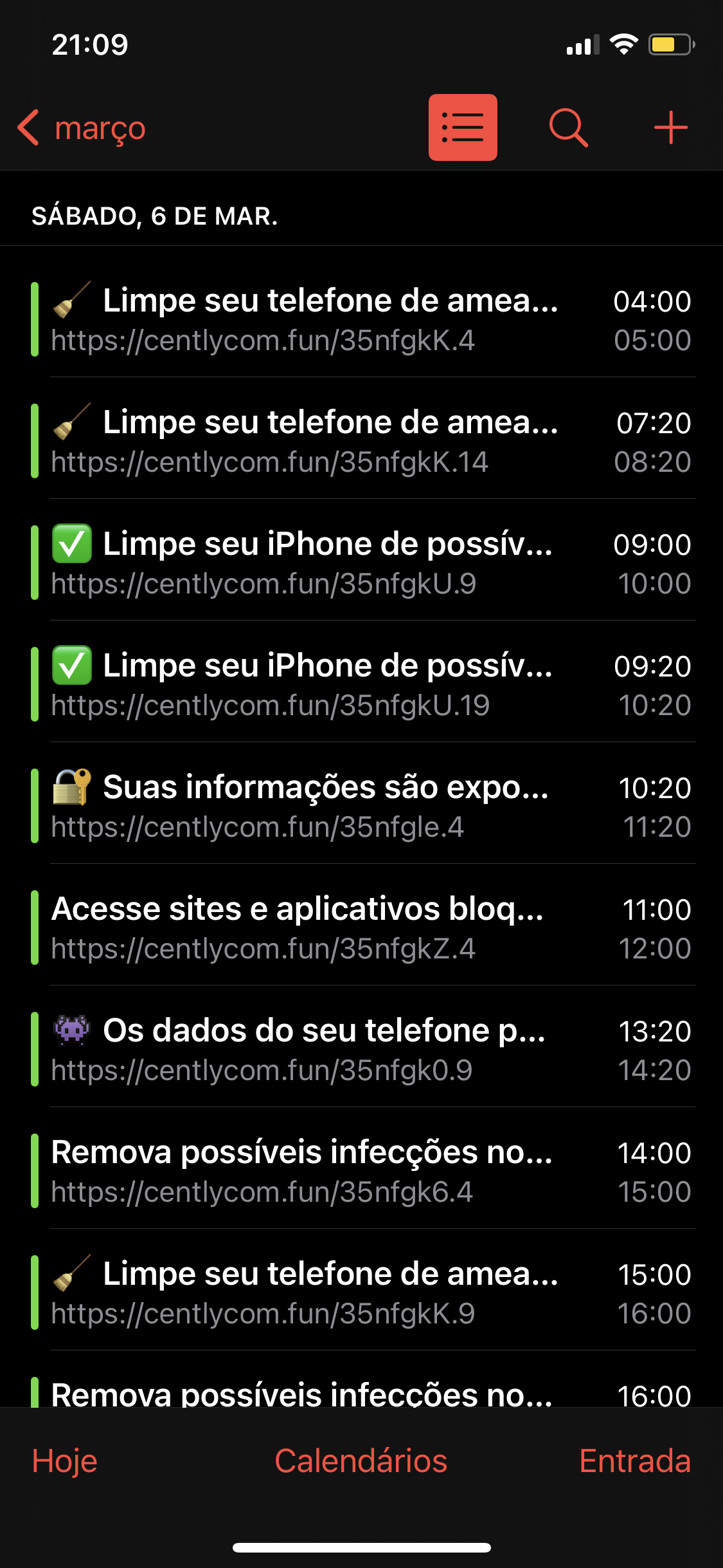 Meu calendário está cheio de notificações que aparecem todos os dias a cada 20 minutos, além de ser insuportável, não consigo apagar