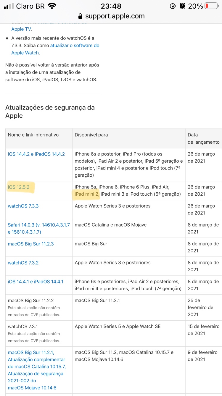 iPad mini 2 na versão 9.3.6, não aparece atualização