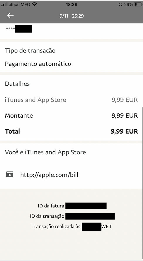 Porque foi debitado no meu cartão duas vezes 9.99€ em dois dias de diferença???