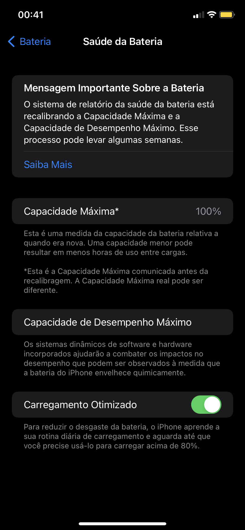 Segue o artigo da Apple com mais informações: Sobre a recalibragem do sistema de relatório da saúde da bateria no iOS 14.5 - Suporte da Apple (BR)