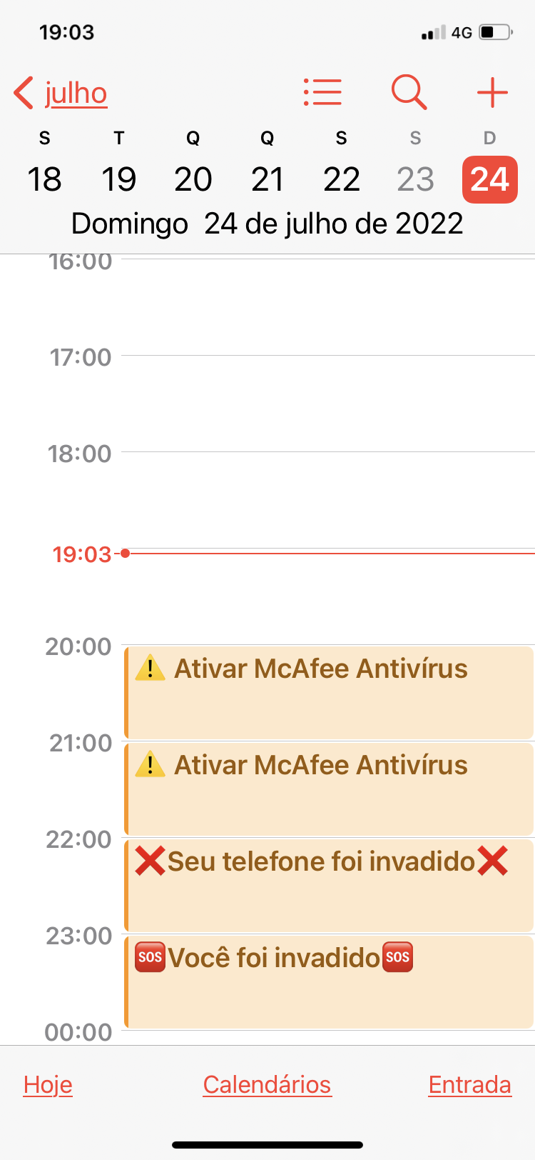 Aviso de iPhone invadido no calendário