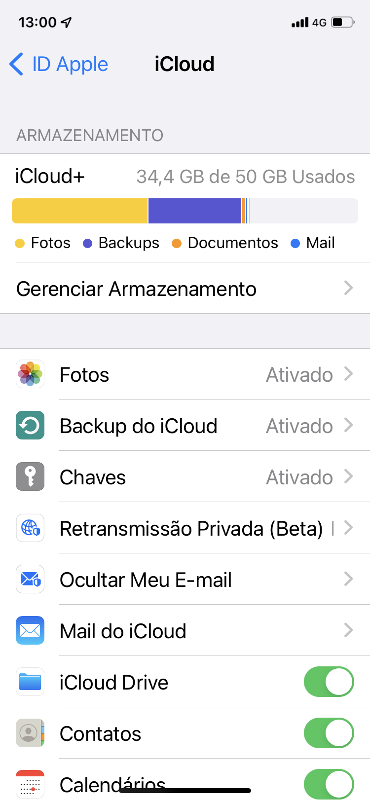 - Toque em iCloud para verificar a quantidade usada de armazenamento do iCloud.