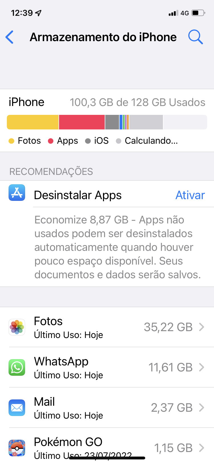 Verificar o armazenamento do dispositivo no iPhone ou iPad