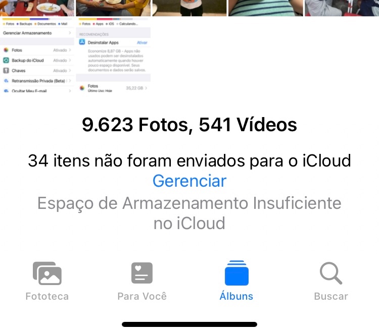 Para otimizar o armazenamento, você também pode usar o armazenamento do iCloud. Você pode usar o armazenamento do iCloud para guardar fotos, vídeos, backups de dispositivos e muito mais, além de poder acessar esse conteúdo em todos os dispositivos. Quando o armazenamento do iCloud estiver quase cheio ou cheio, você receberá um alerta, podendo assim adquirir mais.