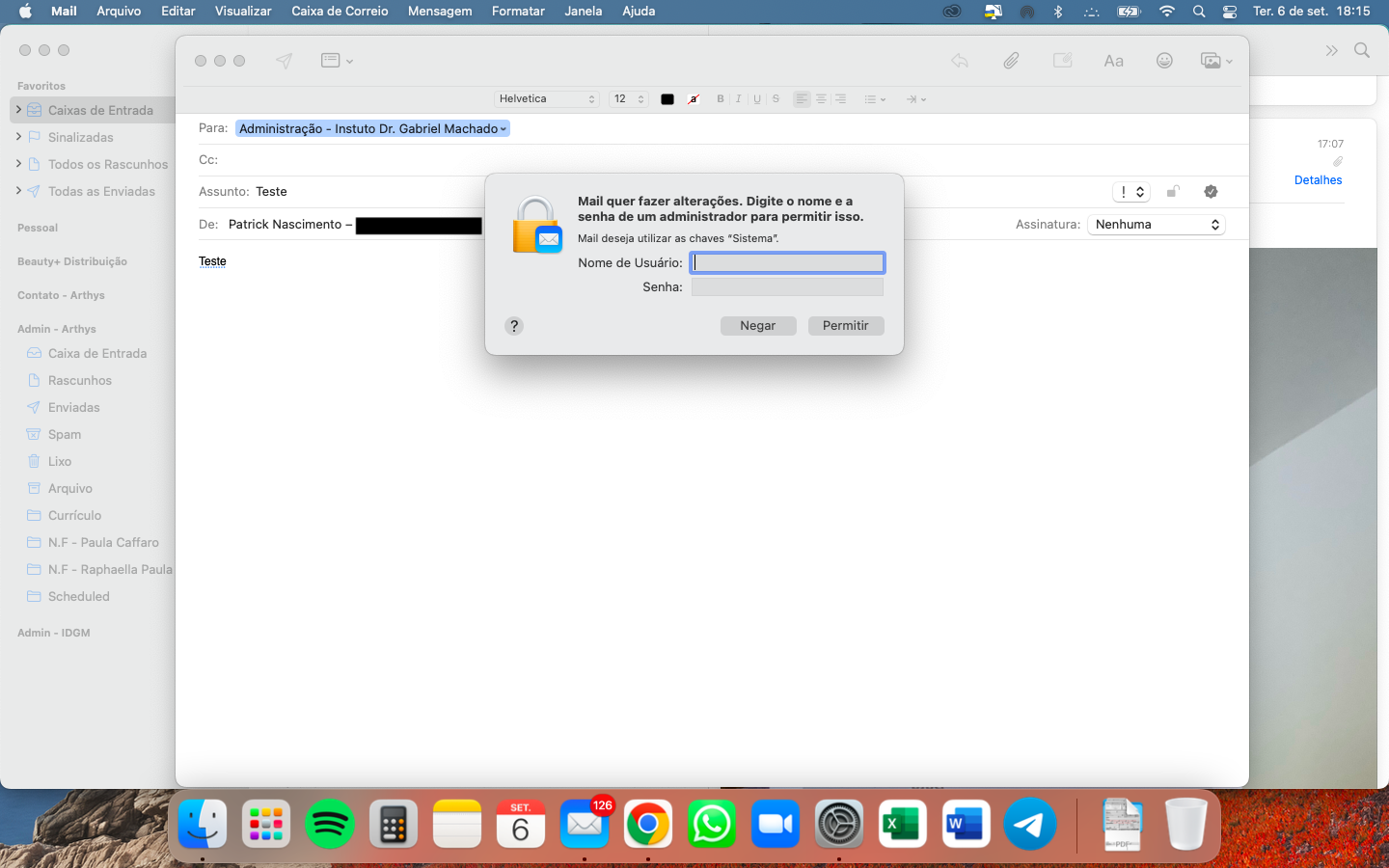 Mac pedindo senha Admin no App MAIL toda hora