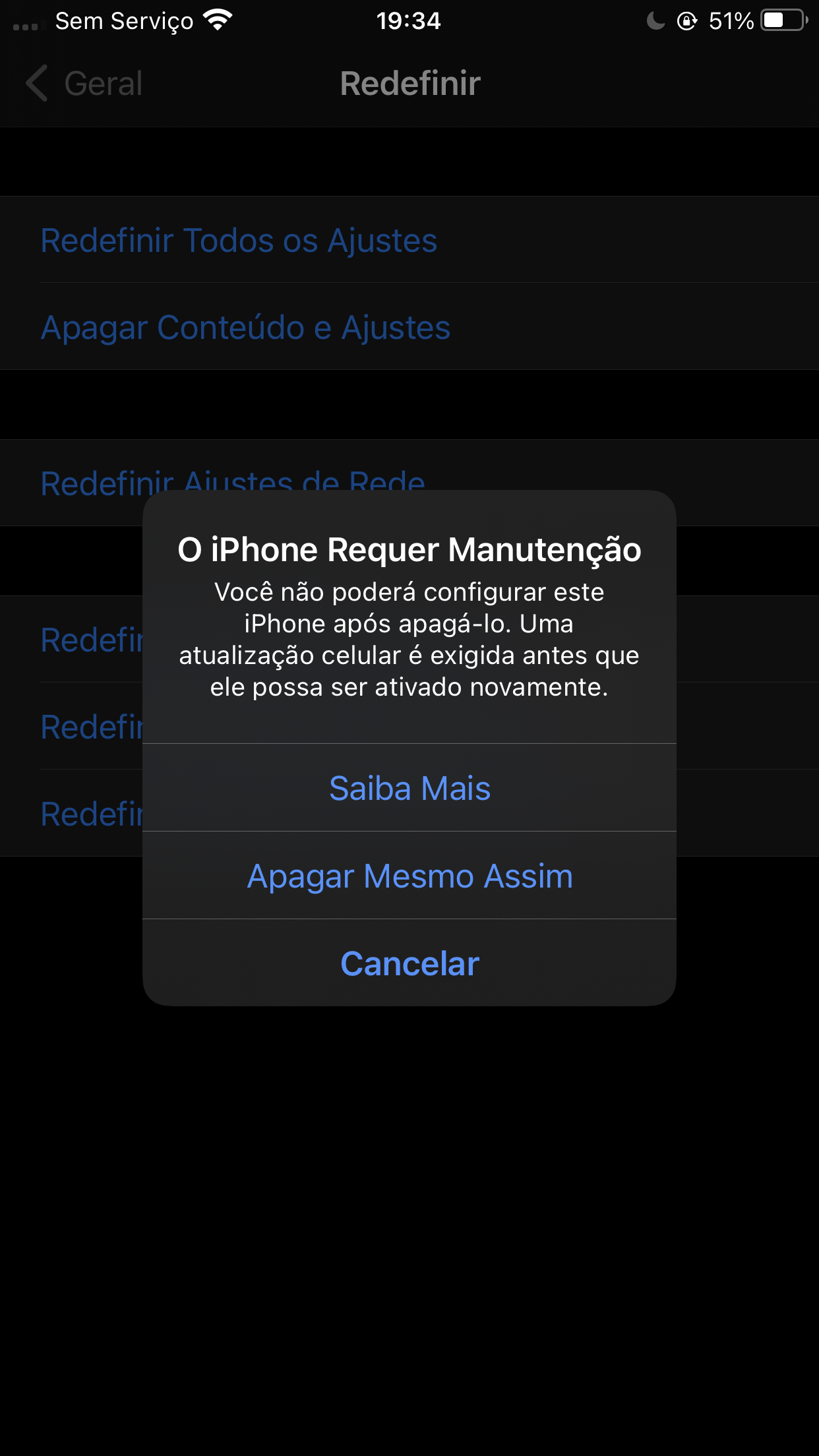 Não consigo formatar o iPhone, porque atualização é exigida