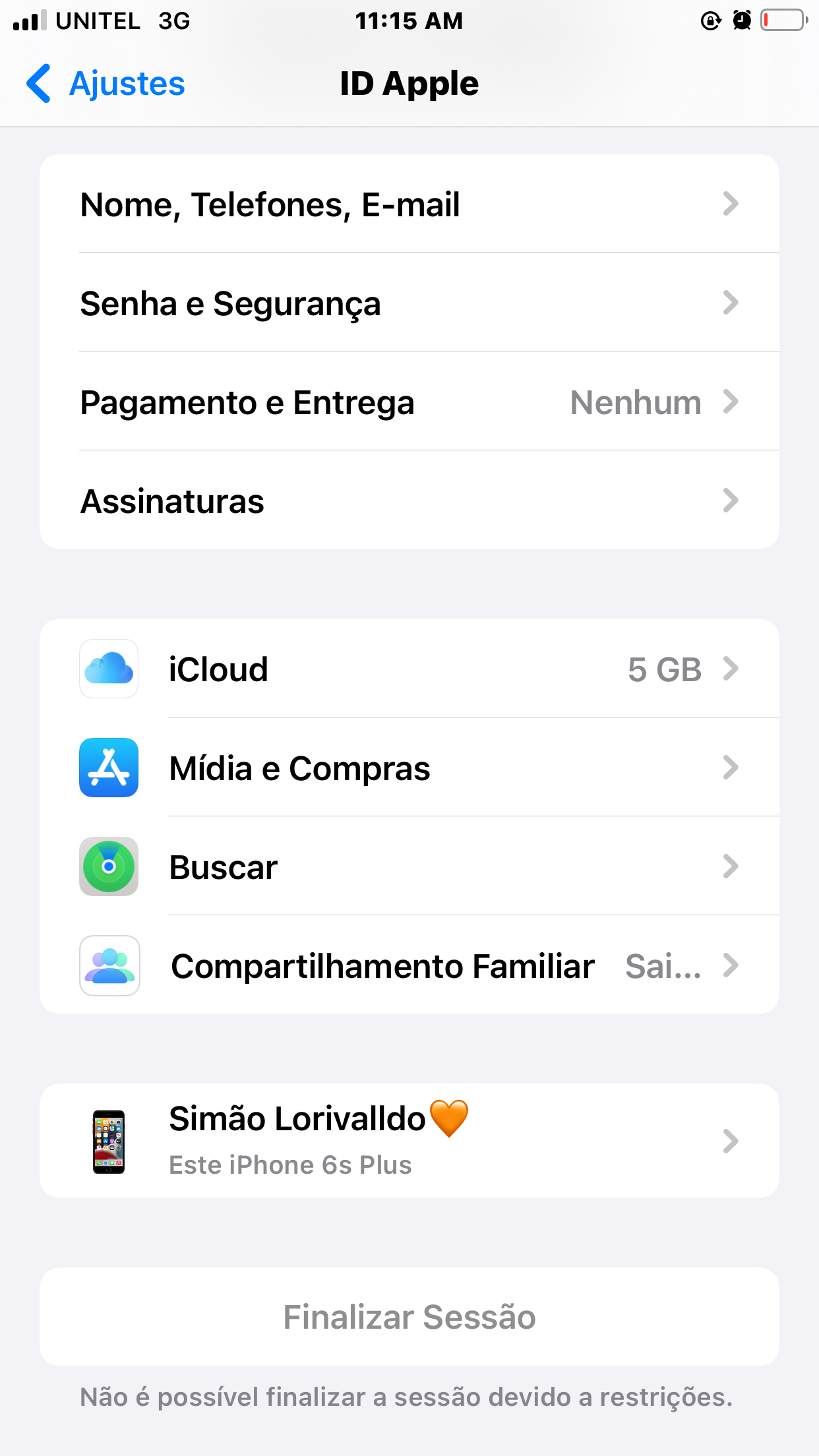 Não consigo terminar seção no meu iCloud, devido às restrições o que fazer?