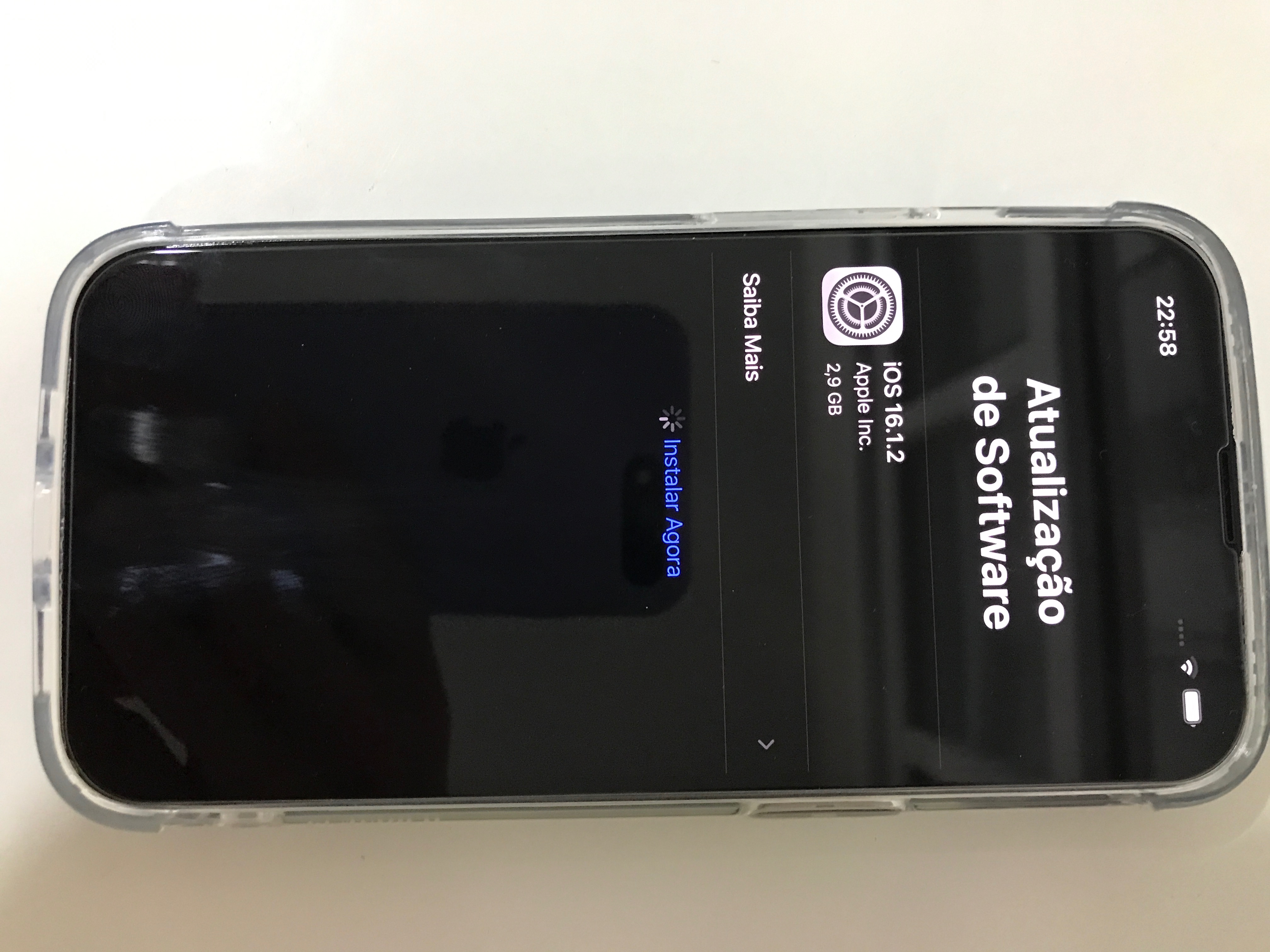 Estou tendo problemas para instalar o iOS 16.1.2 no meu iPhone 13 novo. Ele baixou a atualização mas não está instalando! Está a 5 horas e nada. O que posso fazer para resolver?