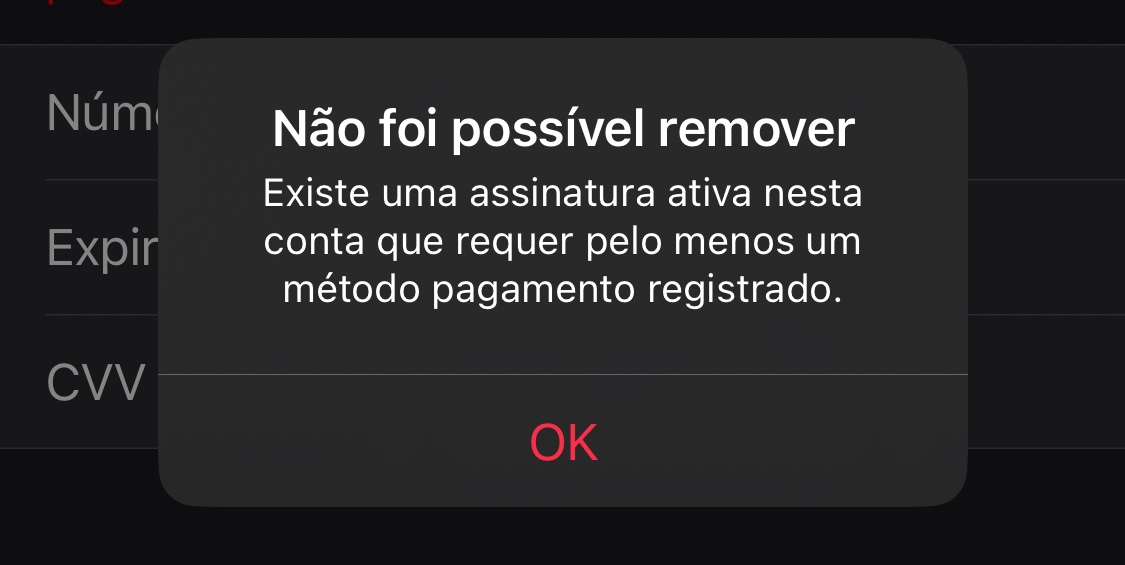 Como trocar cartão no método de pagamento se na hora de Remover aparece msg “ existe uma assinatura ativa nesta conta …”?