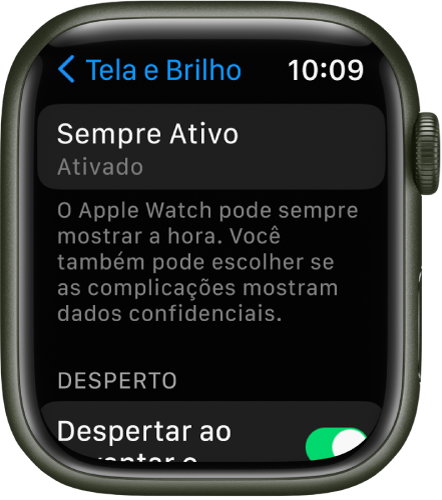no Apple Watch. - Toque em “Tela e Brilho” e toque em Sempre Ativada.