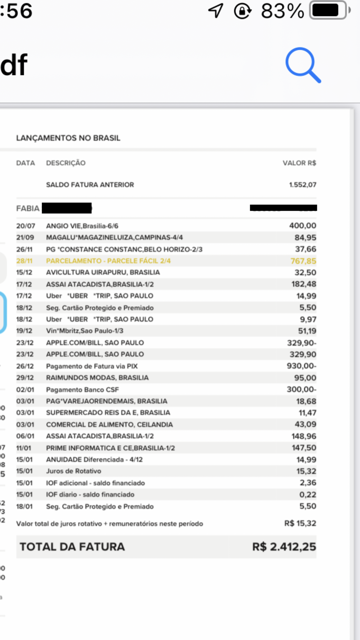 2. Procure um recibo que corresponda ao valor que você vê na sua fatura.