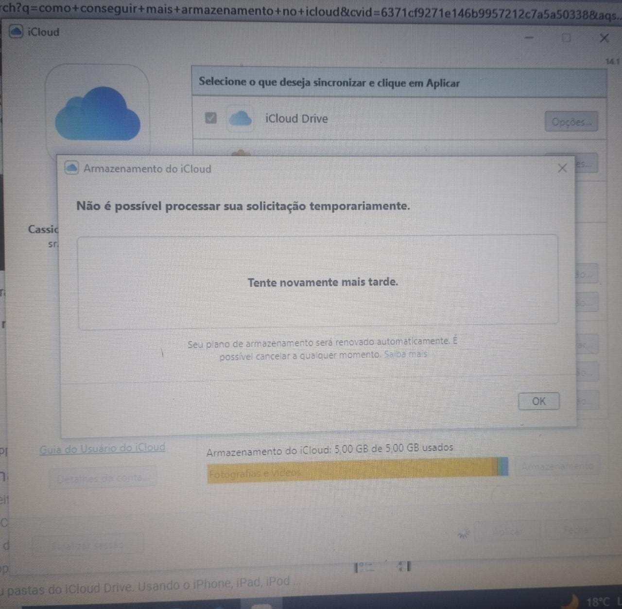 ja tem 3 dias que estou tentando compar armazenamento no icloud e sempre aparece a seguinte mensagem como na foto em anexo, sempre pede para tentar mais tarde e nunca da certo!!!