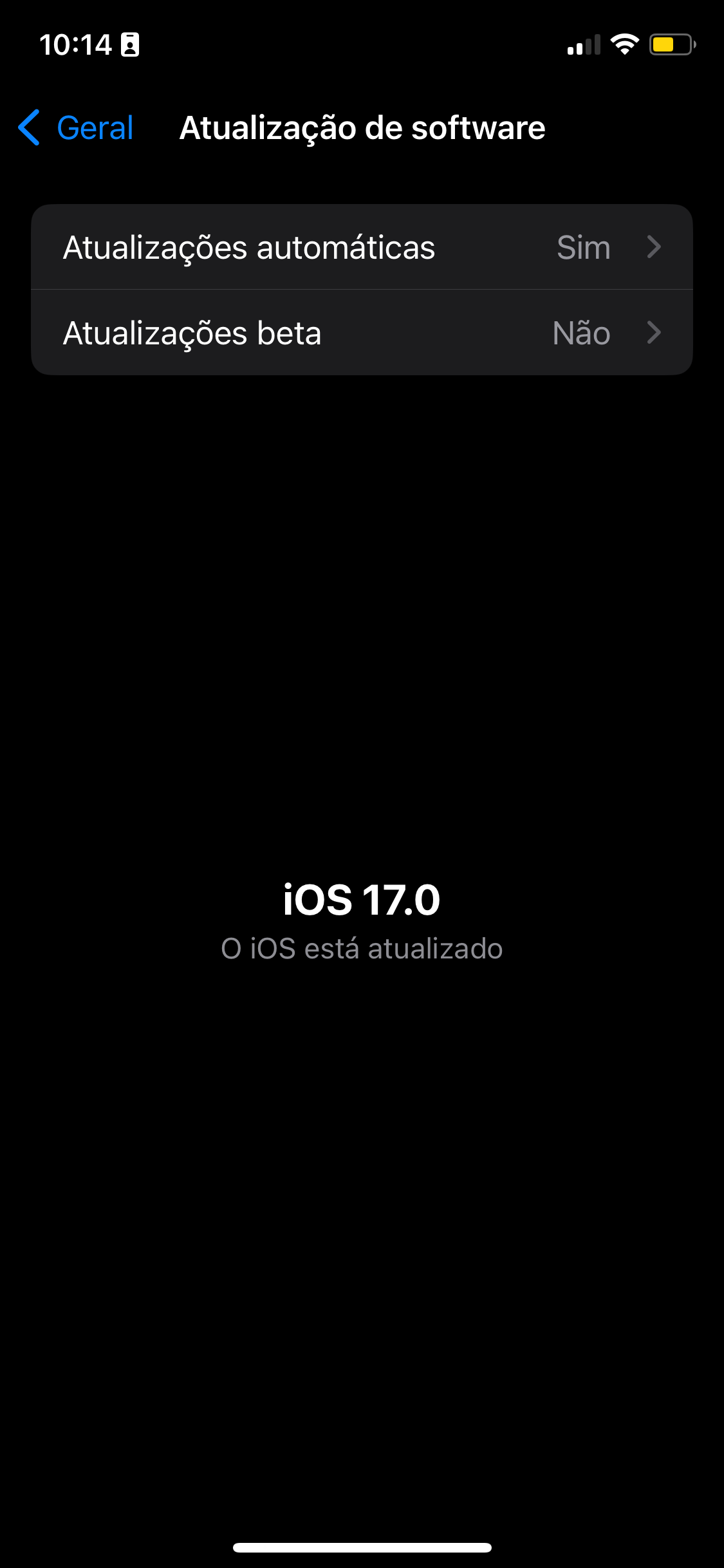 Quando a próxima versão pública do iOS ou iPadOS estiver disponível, instale-a para voltar a uma versão não beta do iOS ou iPadOS. Caso haja uma atualização disponível, você pode acessar Ajustes > Geral > Atualização de Software para fazer a instalação. No entanto, a versão do iOS ou iPadOS deve ser posterior à versão que você tem.